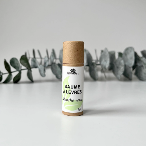 - Le baume à la menthe verte est fait de macérât de mélisse officinale, il est antiviral et aide à contrer l'apparition des feux sauvages tout en apaisant et protégeant les lèvres.