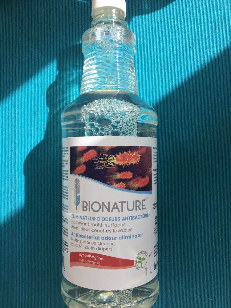 - Ce produit s’inscrit pour assainir les couches lavables, il peut aussi assainir les vêtements réguliers tels que (vêtements du personnel qui travaille dans les hôpitaux, ferme, épiceries ou vêtements des sport, serviettes, débarbouillettes, linges à vaisselle, etc.) La procédure est de faire un lave-linge régulier avec la lessive et dans le compartiment de l’assouplissant introduire 15 ml d'éliminateur sans assouplissant, du coup les tissus auront été éliminés de l'ensemble des bactéries. Ce produit peut-être utilisé sur toutes les surfaces. Il faut simplement suivre les indications sur l’étiquette. (22 ml à 30 ml d’éliminateur d’odeur antibactérien dans 4 L d’eau, transvider dans une bouteille à vaporiser et nettoyer les surfaces désirées).