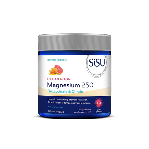 La formule de magnésium 250 de Sisu fournit 250 mg de magnésium hautement assimilable par portion grâce à l'utilisation des formes citrate et bisglycinate, qui sont très biodisponibles. Elle contient aussi de la L-théanine, molécule extraite du thé vert qui possède des propriétés relaxantes, mais aussi toniques de la concentration. Finalement, on y retrouve du GABA, molécule apaisante produite par notre système nerveux et souvent en déficit dans les cas de stress, anxiété chronique et troubles de l'attention.