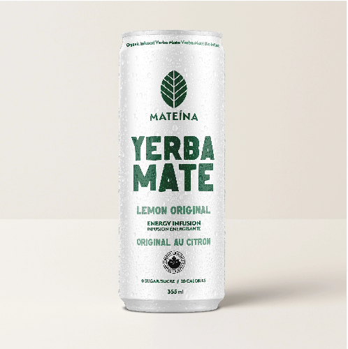 Yerba Mate biologique infusé, sucre de canne biologique, concentré de jus de citron biologique, arôme naturel, extrait de Yerba Mate biologique (feuilles), acide citrique.